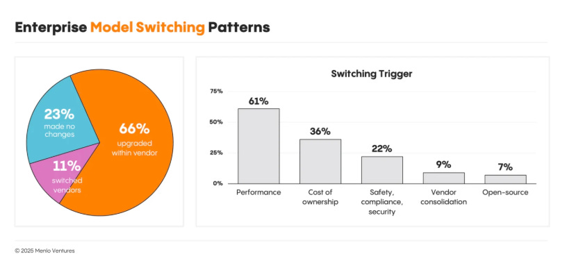 A great data-driven update on LLM Market. This chart is particularly interesting and supports what weâve been learning - Today, enterprises are continuing to upgrade to the newest models.