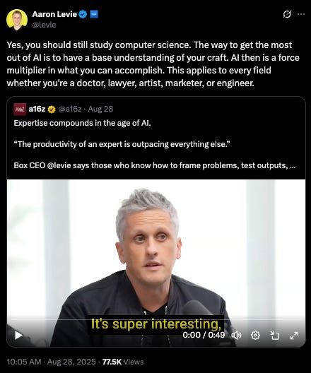 The full interview of Aaron Levie on the A16z pod highlighted in this tweet (or is it an X?)