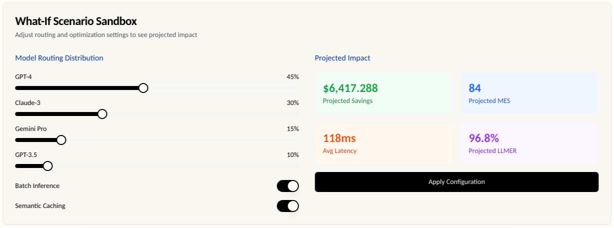 And play with model-mix scenarios to estimate the impact of making changes on their spend, performance and quality.