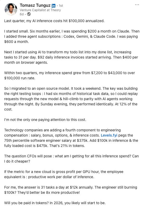 Since OpenClaw, we’re now seeing a lot more discourse about LLM costs. It’s a good reminder of why the AI taking over the world is going to take time.