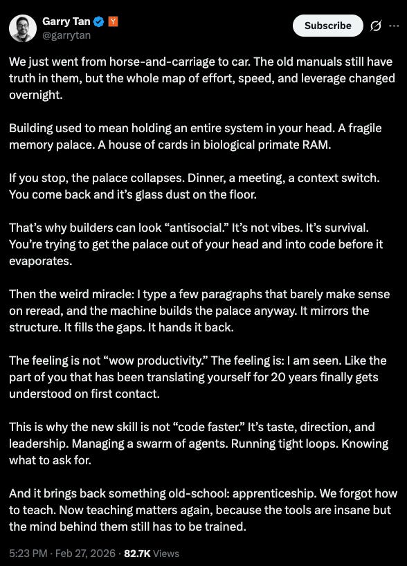 “the new skill is not “code faster.” It’s taste, direction, and leadership.”