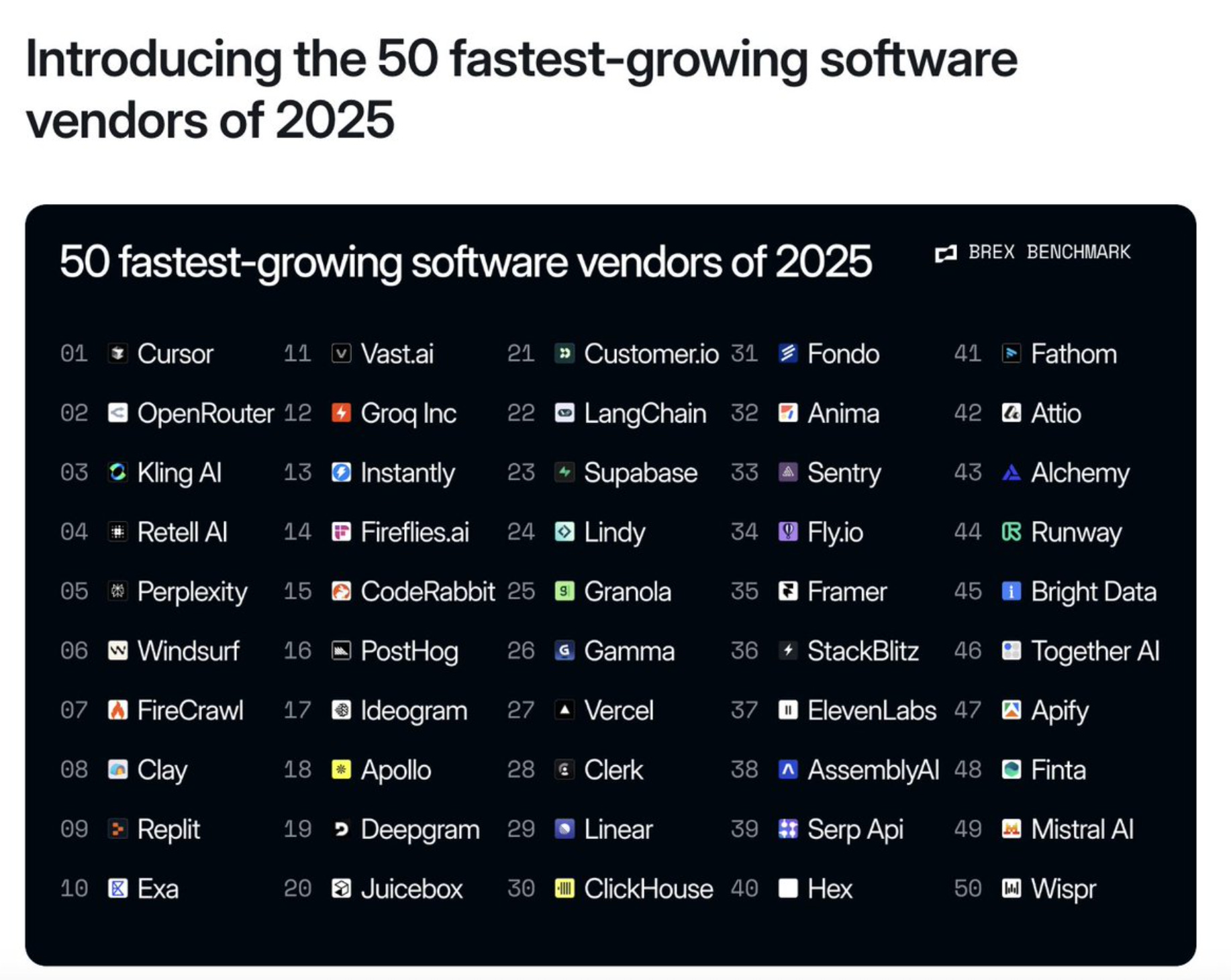 50 Fastest-growing Software Vendors of 2025