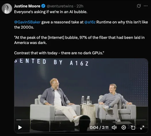 Gavin Baker, managing partner at Atreides Management, shared a unique perspective on the AI Bubble talk. Spoiler: NOT in a bubble