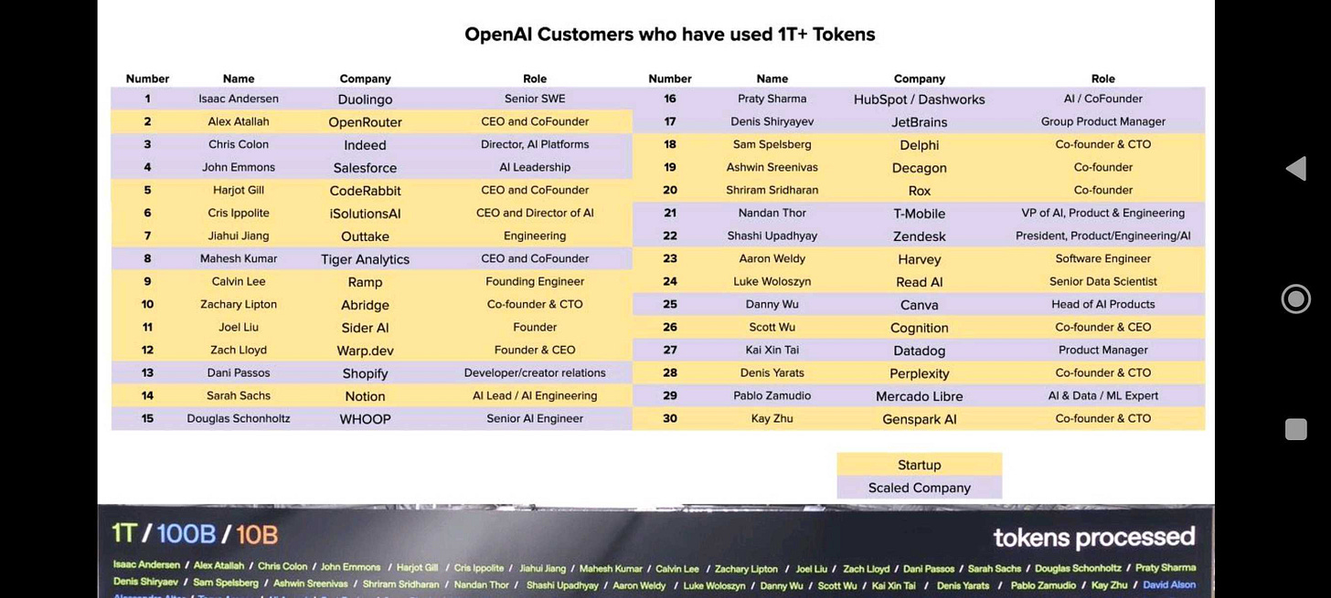 Some developers in the room had processed over 1 trillion tokens on OpenAI’s platform.