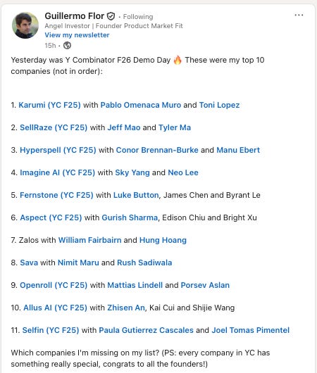 Top 10 Y-Combinator Companies according to Guillermo Flor
